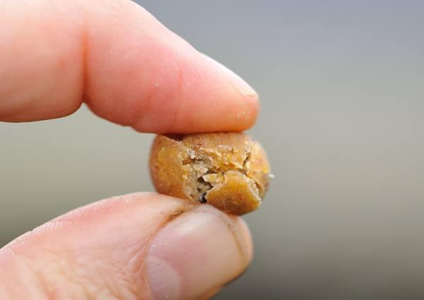 Az etetés előtt előzetesen áztassa be vagy forrázza le a csalit, és vágja negyedekre a bojlikat. Táplálja a kompakt és különösen puha csalikkal a pontyokat. Minél kevesebb erőfeszítést kell tenniük az étel feldolgozására, annál gyorsabban fogják megenni. Ha nehéz, kemény kezünkkel összenyomhatatlan egy bojli, akkor valószínű, hogy a ponty nem veszi a fáradságot, hogy többet megegyen.A puha és kicsi csali télen plusz. Válasszon 12 vagy 15 mm bojlit a szokásos 20 mm átmérő helyett. Ez kétségtelenül az egyik legjobb téli tipp!